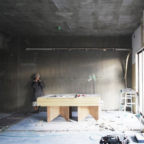 ブックカフェみたいなマンションリノベーションのF様邸。現場にお邪魔してきました。 オッシー、そのポーズはなんなのだ?